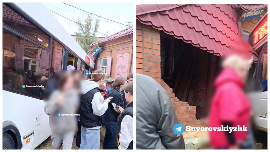 Фото: автобус с пассажирами врезался в дом, кадр ТГ https://t.me/suvorovskiyzhk