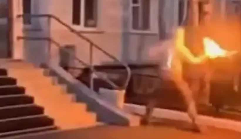Фото: мужчина поджигает здание, иллюстрация - кадр видеозаписи