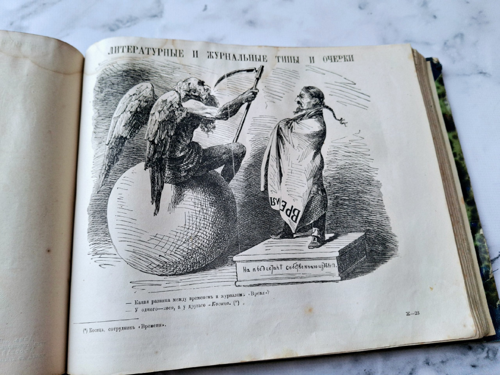 Этот сборник составили из изображений, которые появлялись в номерах сатирического журнала «Искра». Он издавался в Петербурге с 1859 по 1873 годы еженедельно.