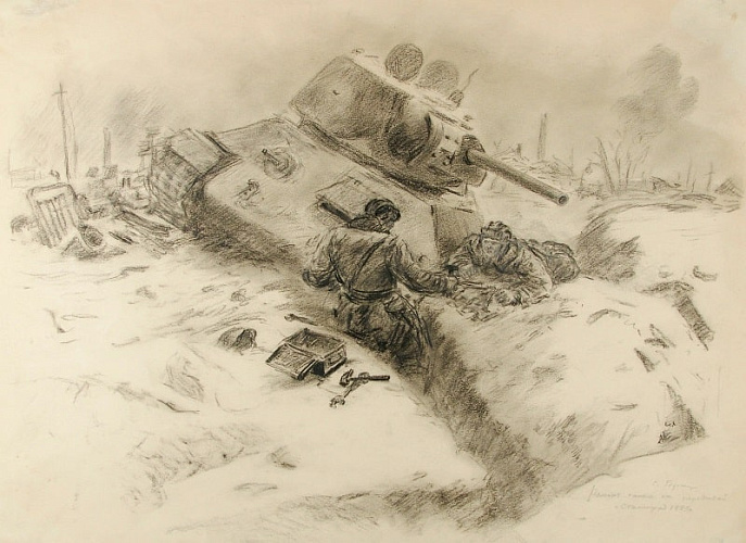 Фронтовой рисунок — бесценный памятник времён Великой Отечественной войны. Работы, которые были сделаны в окопах, зачастую носят дневниковый характер. Они содержат не только зарисовки, но и мысли солдат, переживания и впечатления.