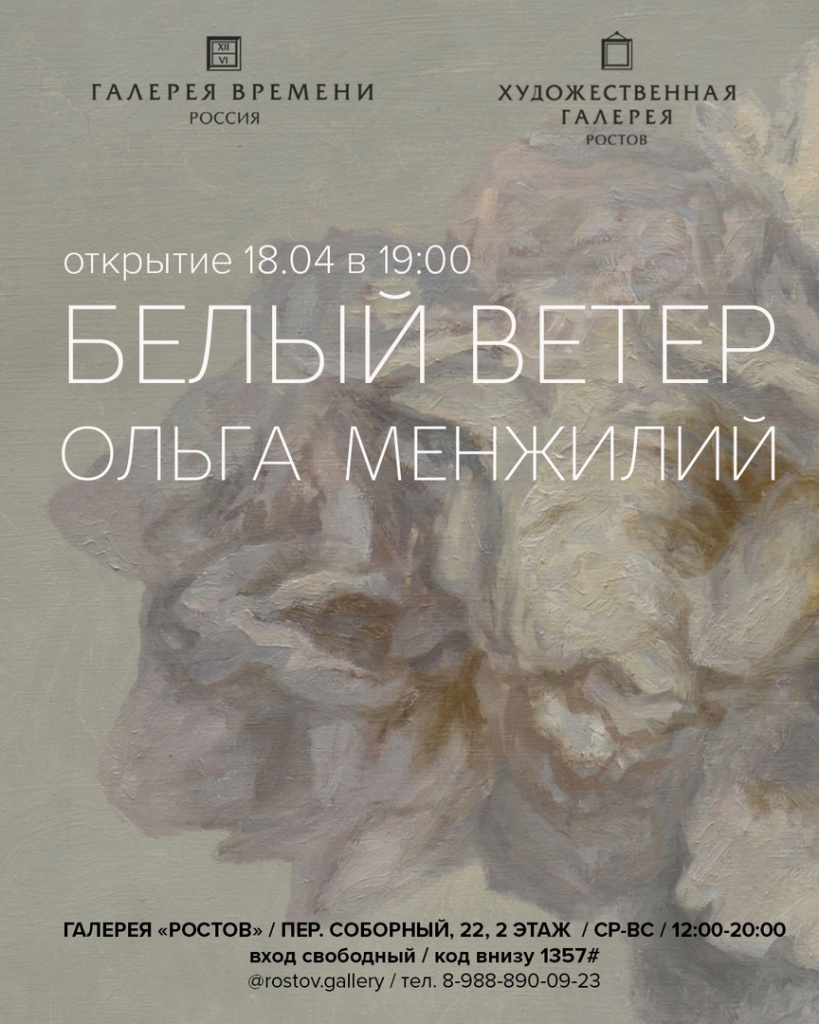 В Ростове 18 апреля откроется выставка Ольги Менжилий «Белый ветер». Жителей и гостей города приглашают к 19:00 в художественную галерею «Ростов».