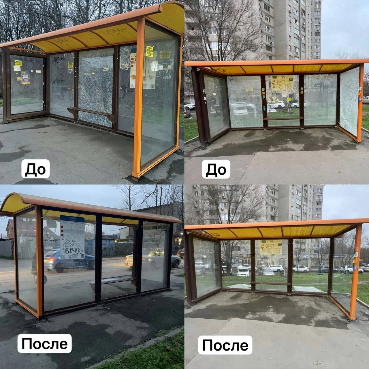 44 стекла заменили на 20 остановках Ростова из-за вандализма