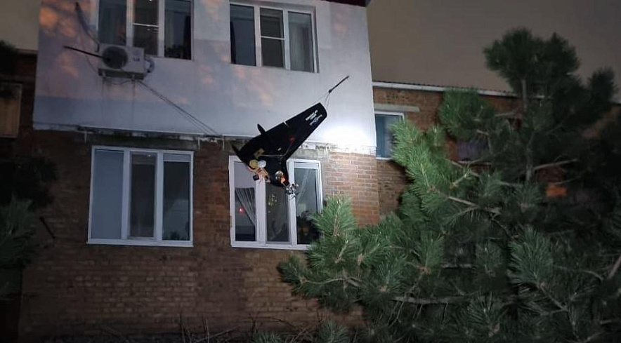 Дрон запутался в бельевой верёвке на жилом доме в Аксае ночью 9 апреля. Всех жильцов экстренно эвакуировали, ближе к полудню взрывчатку на БПЛА обезвредили.