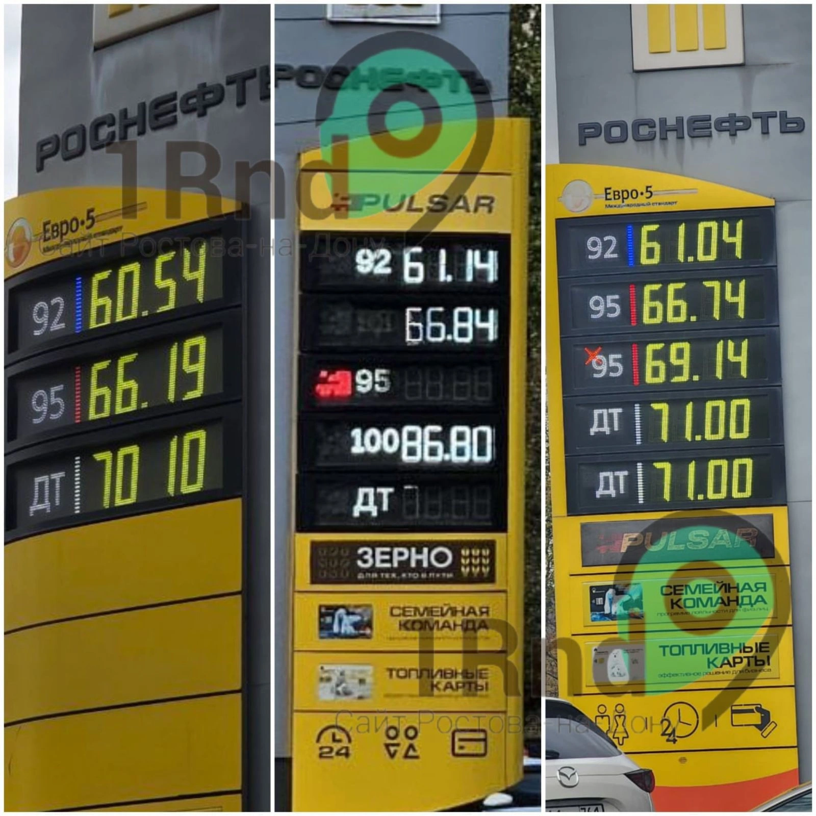 Фотографии были сделаны на заправке «Роснефть» в черте города 24 и 31 октября. Так, стоимость АИ-92 24 октября составляла 61 рубль 14 копеек, сегодня – 61 рубль 4 копейки (-10 копеек).