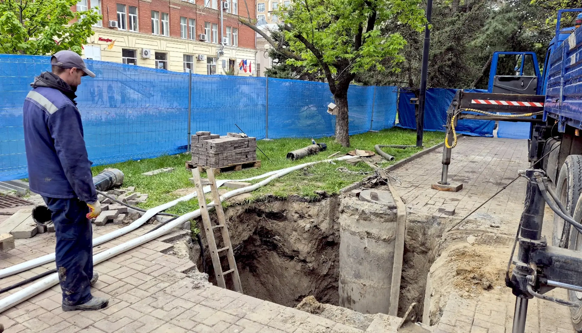 Бестраншейный метод и ударные темпы: коммунальщики ремонтируют канализацию на главной пешеходной улице Ростова