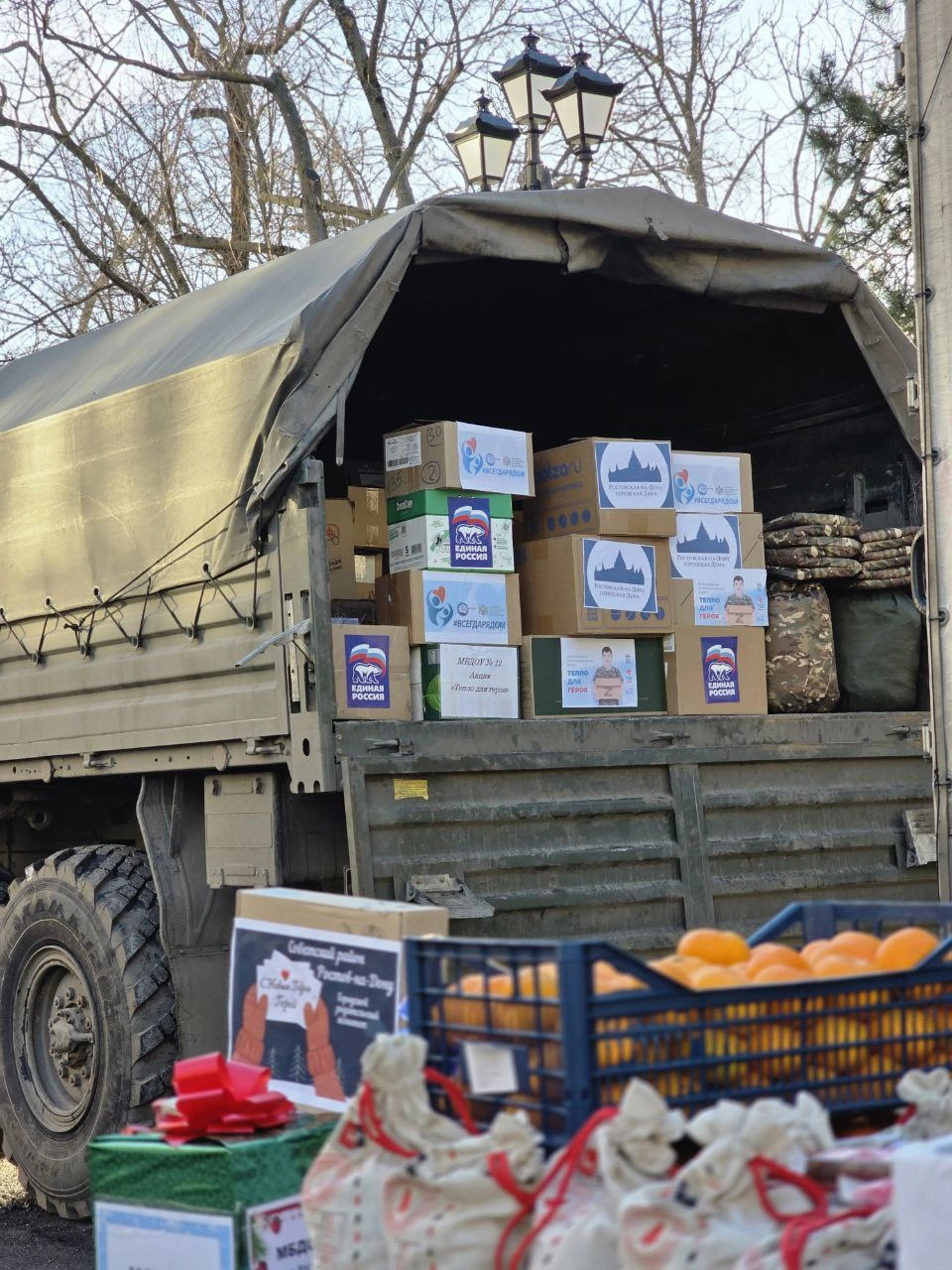 Отправка была сформирована целенаправленно, исходя из реальных потребностей военнослужащих. В состав груза вошли самые востребованные позиции: электрогенераторы и обогреватели, электрические чайники, спальные мешки, комплекты тёплой одежды, спасательные изотермические одеяла и фольгированные утеплители. Также были отправлены средства личной гигиены, медикаменты, витамины, окопные свечи, чай, кофе, сладости и новогодние подарки, включая ящики с мандаринами.