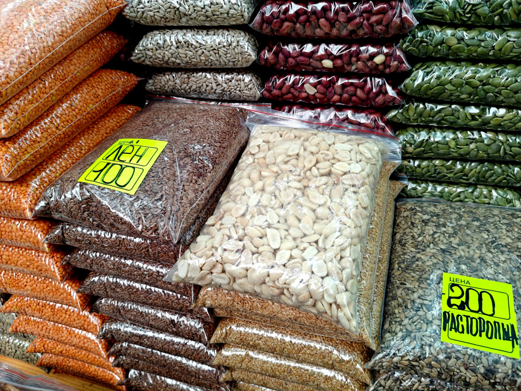 На десерт путешественники предпочитают брать сухофрукты. Они не только полезные, но и сытные. Так, цены на килограмм изюма начинаются от 500 рублей за килограмм. Курага стоит от 500 рублей. По 1000 рублей за килограмм продадут лакомства в глазури: кешью, фундук, миндаль, изюм и клубнику. Кроме того, донские продавцы предложат в арахис мёде и кунжуте, в сахаре, с солью. Небольшой пакет жареного оценивают в 250 рублей, а сырого – в 150.