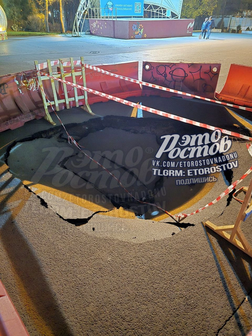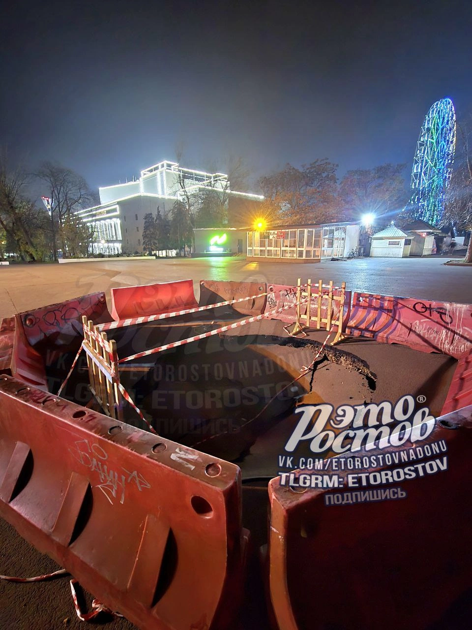 «Чёрная дыра»: В парке Революции в Ростове образовался опасный провал асфальта