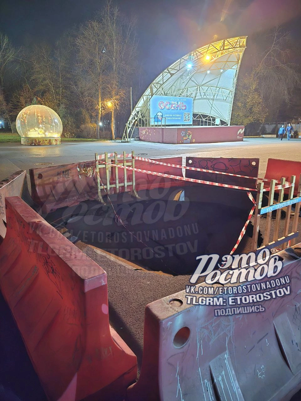 Инцидент произошел в весьма оживленном месте парка — напротив главной сцены, где обычно собирается много людей. На месте происхождения образовался провал, который образно назвали «черной дырой».
