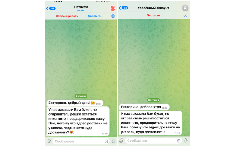 По её словам, утром с неизвестных номеров ей стали приходить сообщения от аферистов. Злоумышленники под видом цветочных курьеров сперва пытались узнать адрес народной избранницы, после чего просили назвать коды из приходящих СМС.