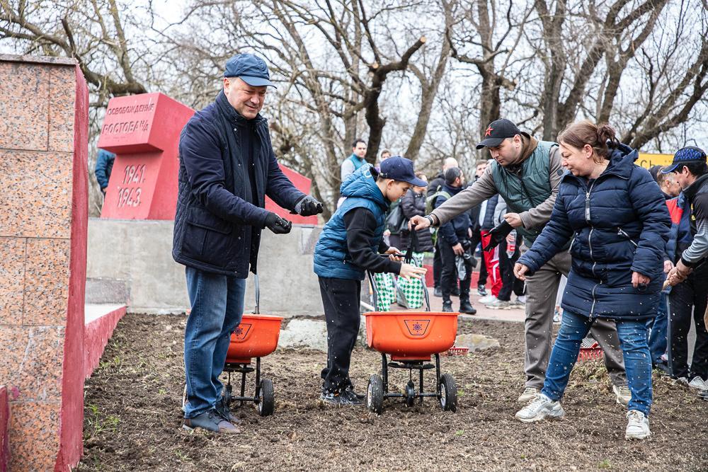 А в районе Кумженского мемориала в субботнике принял участие глава города Александр Скрябин. Он поблагодарил всех, кто сегодня решил помочь сделать южную столицу чище. На этой территории посеяли газон, выкосили камыш, распилили валежник, убрали мусор в лесу и на берегу реки Мёртвый Донец.