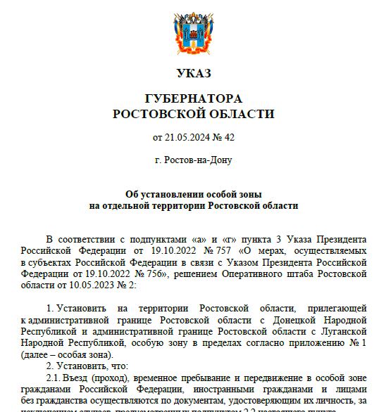 Подробное описание границ зоны, на которой действует особый порядок пребывания, указано в приложении к полному тексту указа https://www.donland.ru/documents/19545/
