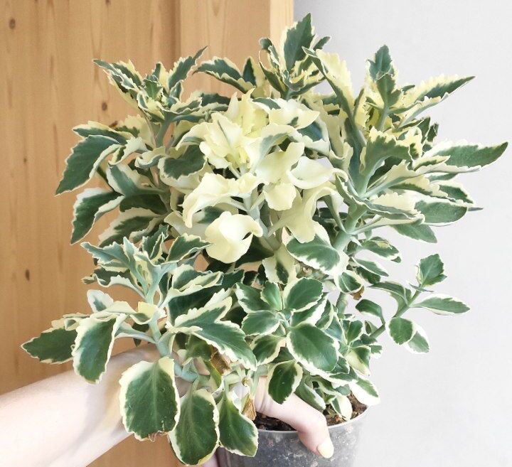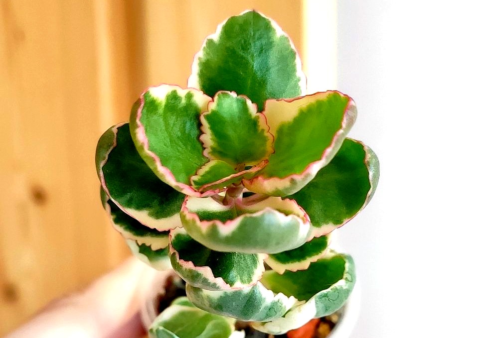 Есть и вариегатный каланхоэ. Листья такого будут более яркими: в зависимости от качества освещения и от генетики, они могут быть окрашены в белый, розовый цвета.