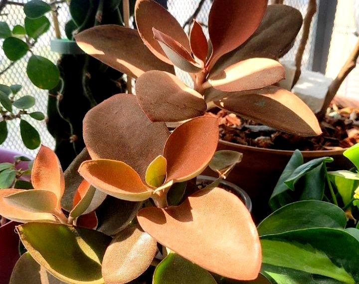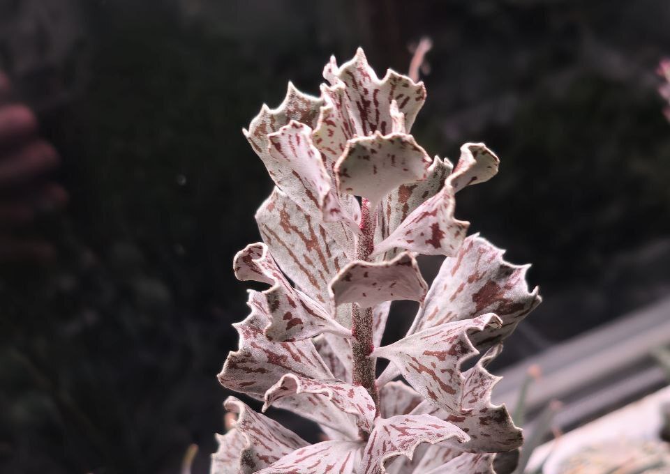 Ромбопилоза благодаря своей необычной форме листьев и окрасу и вовсе не похож на каланхоэ. Он серый, в красно-коричневых пятнах. По мере роста будет постепенно тянуться вверх.