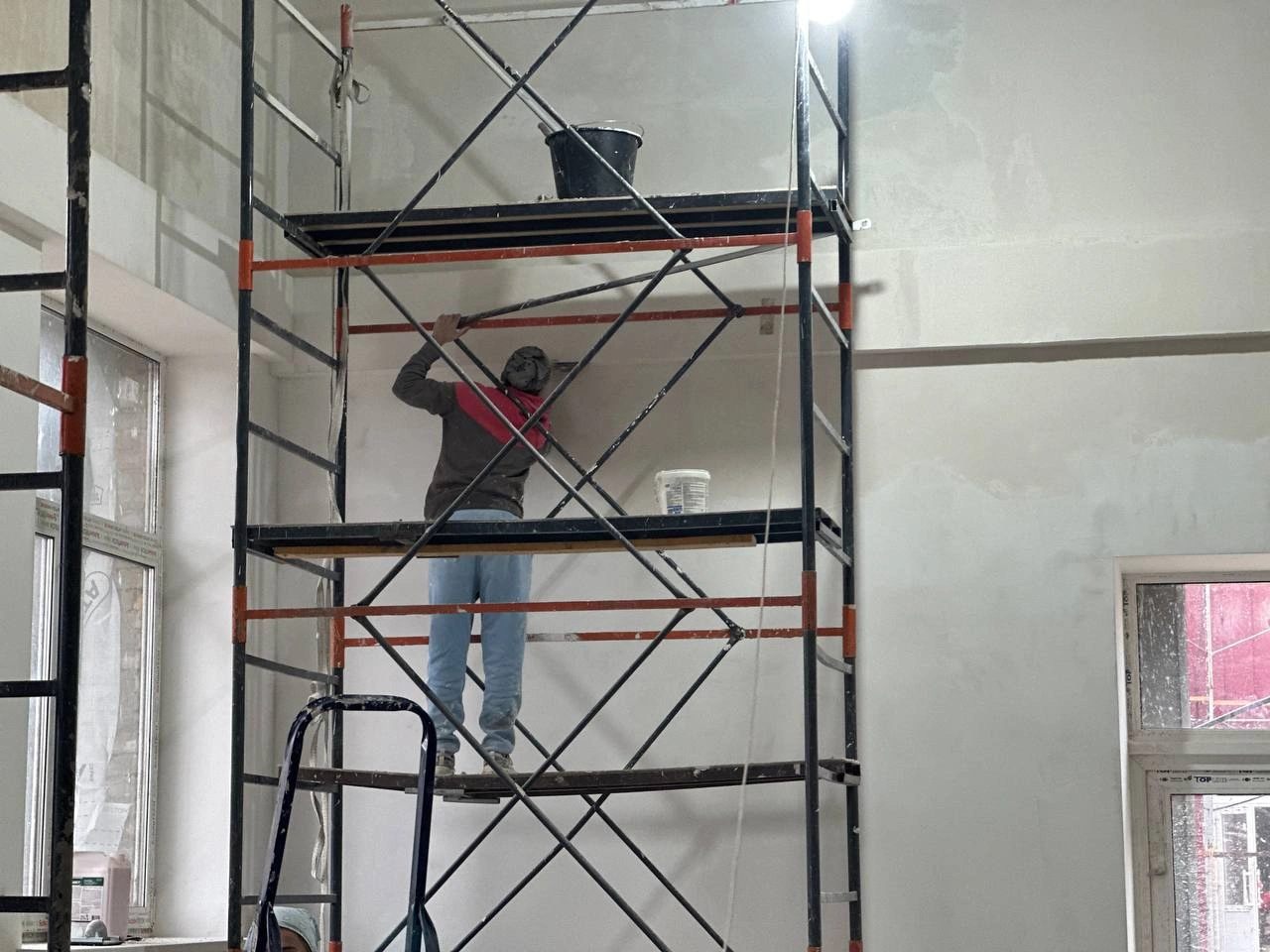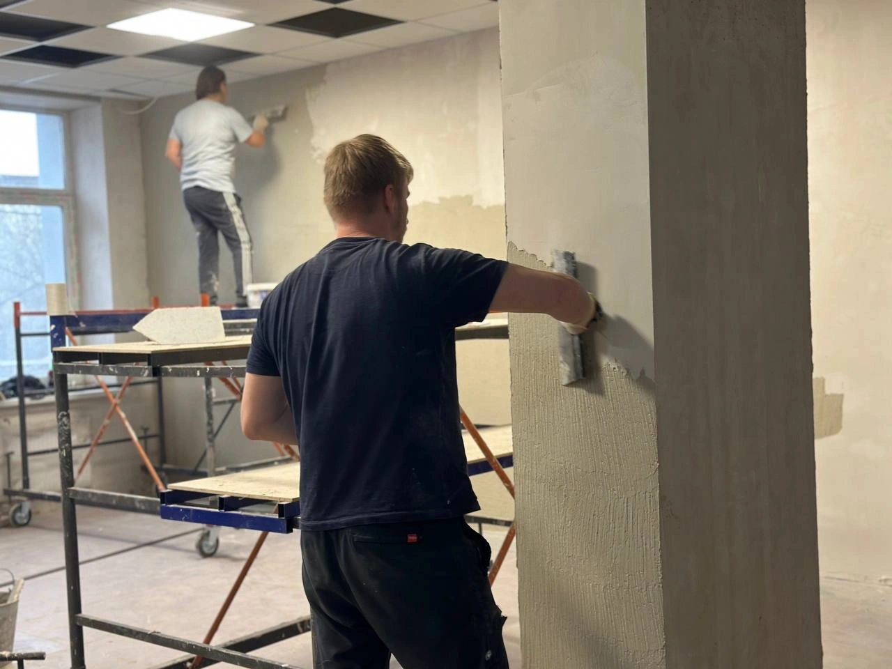 Ремонт в учебном заведении начался весной прошлого года. За это время были полностью заменены все инженерные коммуникации, обновлены фасад и кровля. Сейчас подрядчики активно ведут внутреннюю отделку.