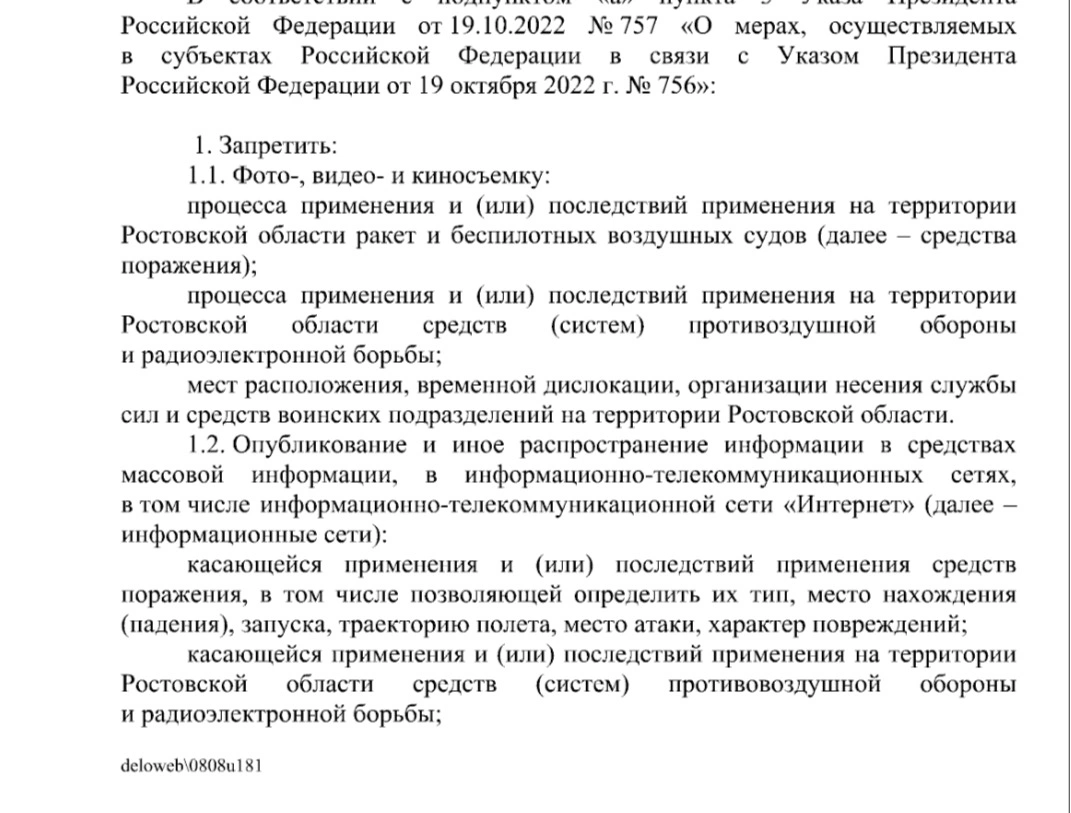 Кроме того, запрещено снимать и размещать любую информацию о применении, а также последствиях работы систем ПВО и средств радиоэлектронной борьбы.