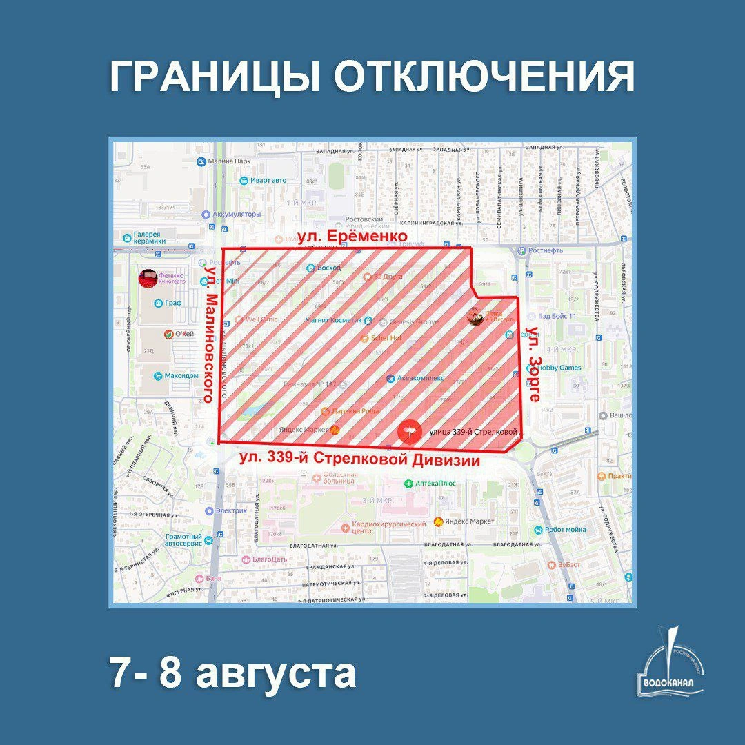 Воды в кранах не будет уже с утра 7 августа. Отключения коснулись жителей улиц Малиновского, Ерёменко, Зорге и 339-й Стрелковой Дивизии.