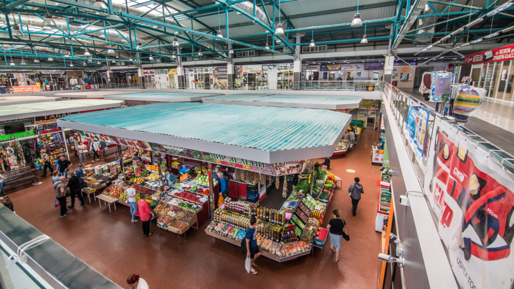 Что касается здания рынка, то к трёхэтажному комплексу подведены все коммуникации: есть центральное водоснабжение и канализация, отопление. Внутри дневное освещение, кондиционирование.