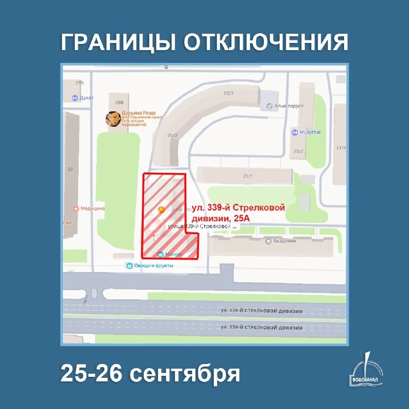 С 9 утра 25 сентября и до 9 утра пятницы без воды останутся жители в границах улиц 339 Стрелковой Дивизии, 25а