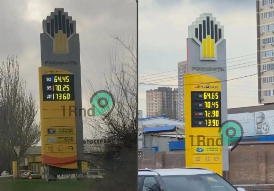 1Rnd вновь отметил увеличение стоимости как бензина, так и дизельного топлива в донской столице. Фотографии были сделаны на заправке «Роснефть» в черте города с разницей в неделю: 27 марта и 3 апреля.