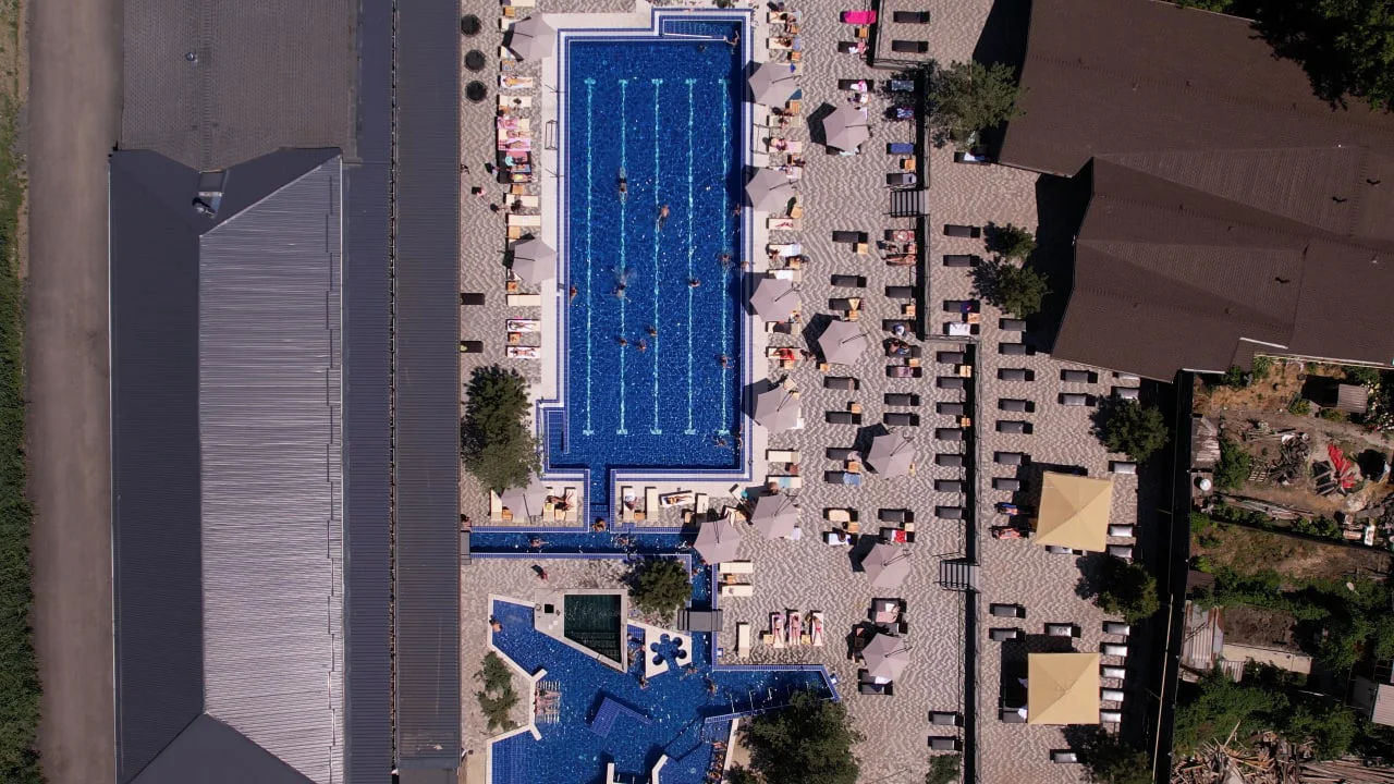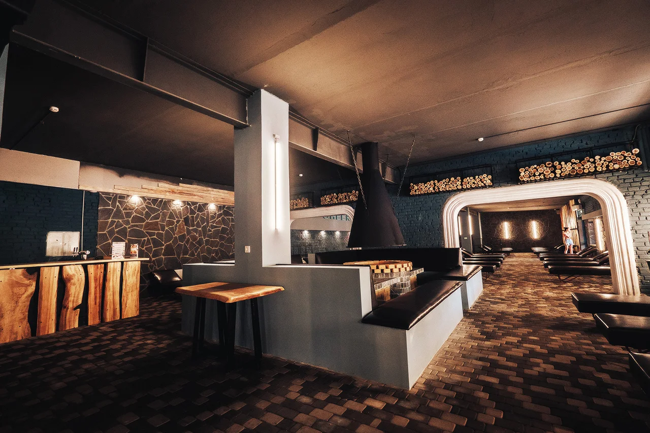 Здесь расположены два бассейна — большой плавательный с температурой 30°C и горячий с 34°C. Водные каналы связывают бассейны, бани и сауны, создавая возможность свободно перемещаться по всей зоне отдыха.