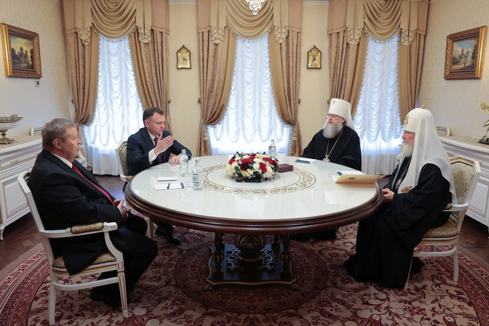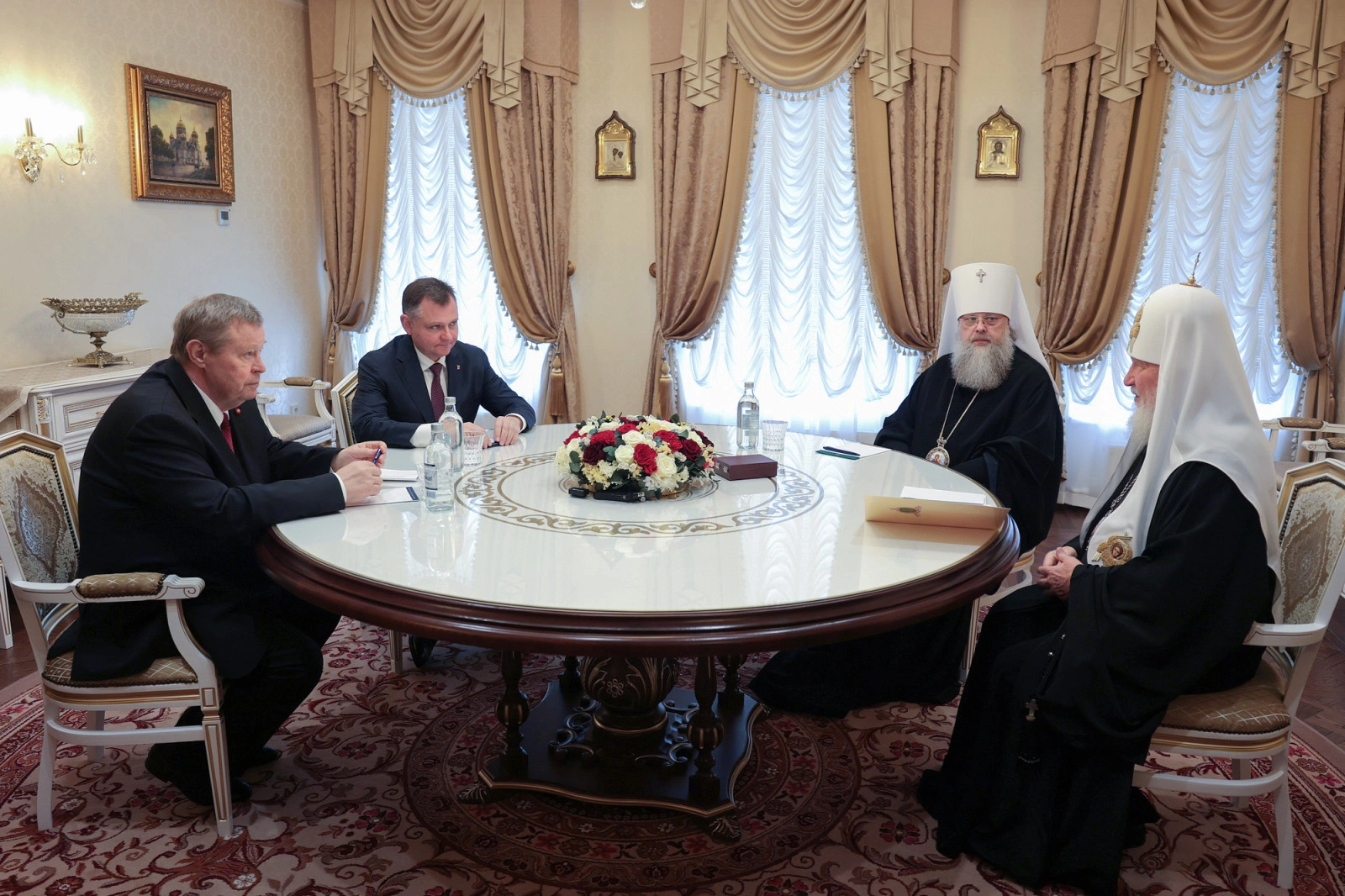 Патриарх Кирилл встретился с Юрием Слюсарем и полпредом президента на Дону