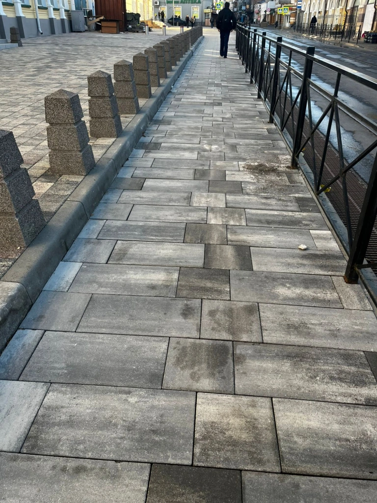 В рамках муниципального контракта подрядная организация выполнила работы по обновлению плиточного покрытия тротуара на площади 640 квадратных метров. В процессе ремонта была полностью заменена плитка, а также установлены монолитные водоотводные лотки для эффективного отвода дождевой воды. Особое внимание было уделено обеспечению доступности — на пешеходном переходе около переулка Семашко уложили тактильную плитку, предназначенную для помощи слабовидящим пешеходам. Таким образом, ремонт не только улучшил состояние тротуара, но и повысил безопасность и комфорт для всех групп населения.