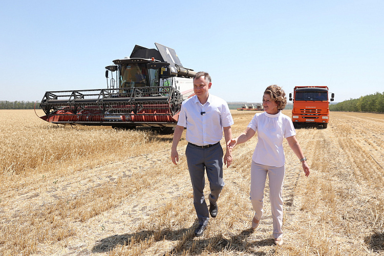 Глава региона пообщался с руководителем хозяйства и механизаторами. Они рассказали о сложностях урожайного года. Если в хозяйстве урожайность составляет 20 ц/га, то соседние предприятия собирают всего 3–4 ц/га. Лучшие результаты были на полях «Колоса», лишь благодаря сортам местной селекции - «Станичная», «Аскет» и «Донская степь», которые оказались наиболее морозо- и засухоустойчивыми