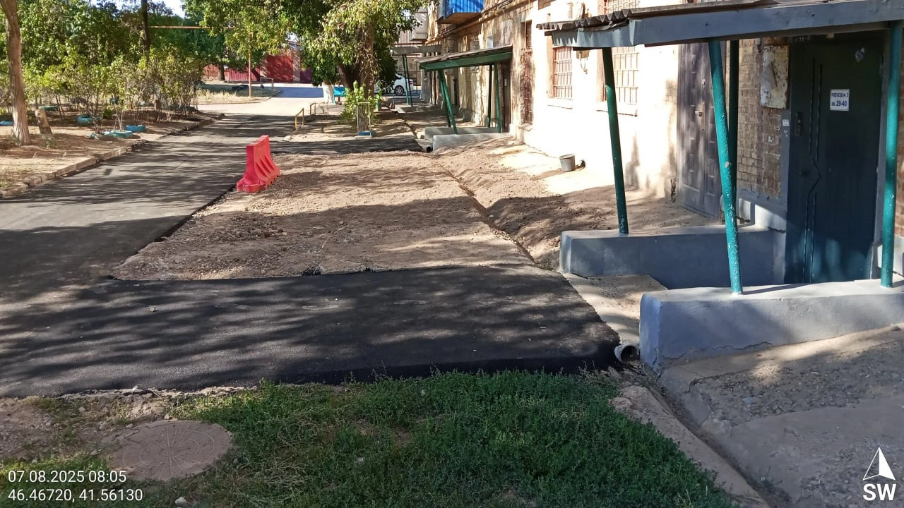 Во дворе обустроили новое асфальтовое покрытие, сделали удобные дорожки к подъездам и парковочные места для жителей. Также завезли грунт для будущей клумбы, которую планируют создать местные жители. Работы выполняли специалисты коммунальных служб и управляющей компании, обслуживающей дом.