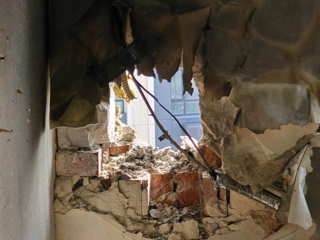 Появились кадры последствий попадания беспилотника в многоквартирный дом в Ростове