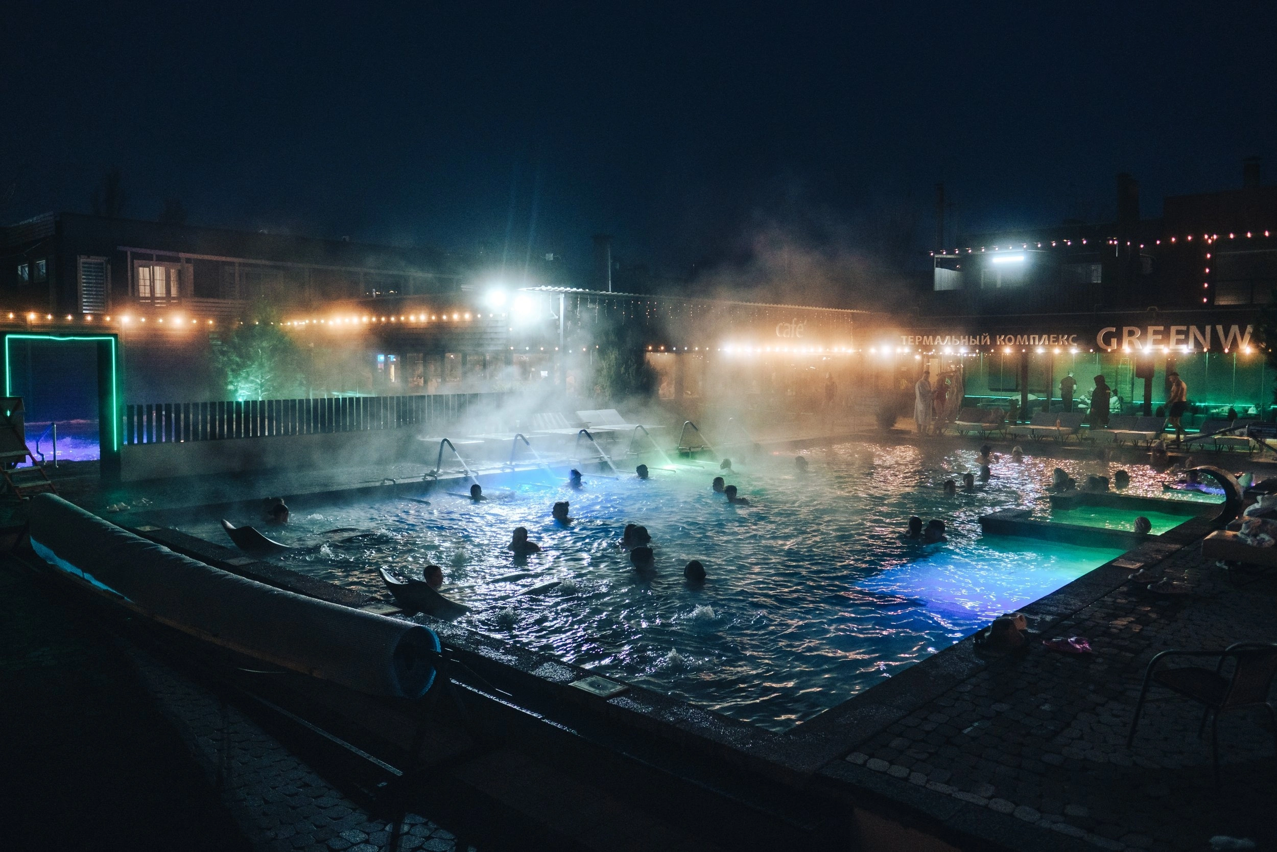 Горячие бассейны под открытым небом — это настоящее наслаждение. Вы сможете расслабиться в бассейнах с гидромассажными лежаками и водопадами, а температура воды достигает комфортных 32 градусов. Здесь вы забудете о повседневной суете и насладитесь атмосферой уюта и спокойствия.
