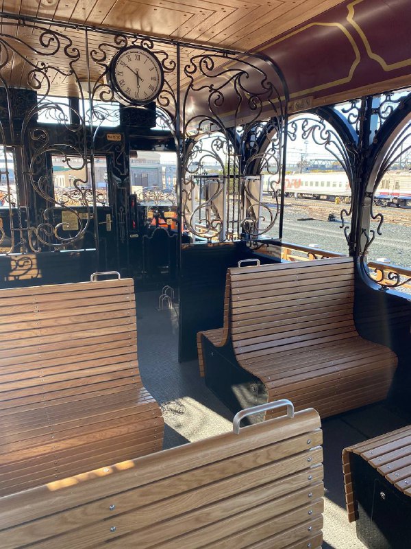 Обзорный вагон, как сообщает пресс-служба Северо-Кавказской железной дороги, открытого типа стилизован под эпоху начала XX века.