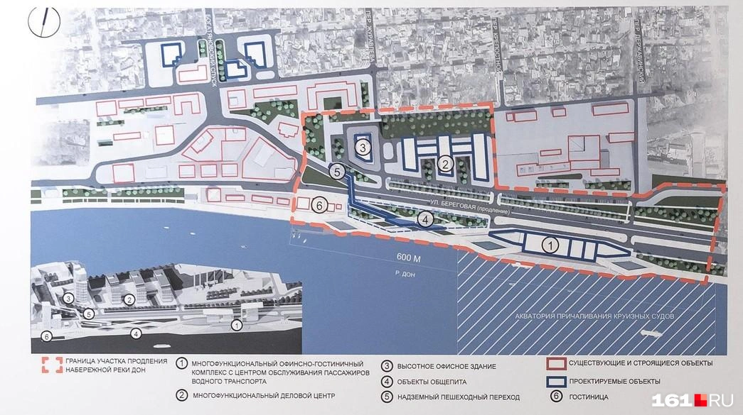Как пишет 161.ру, набережную планируют продлить на 600 метров: от Богатяновского спуска до Державинского переулка. В этом месте разместят гостиницы, рестораны и