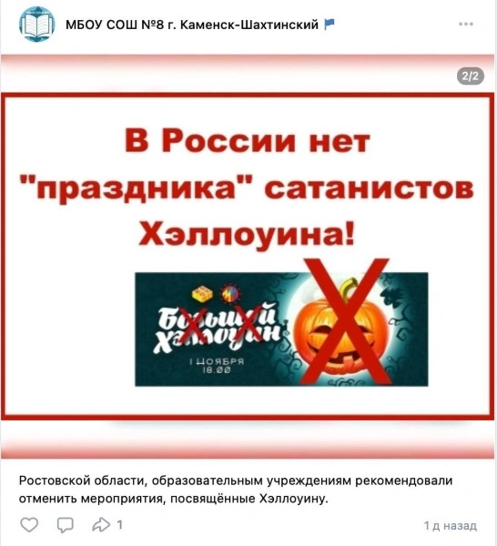 Школа в Ростовской области запретила ученикам отмечать Хеллоуин