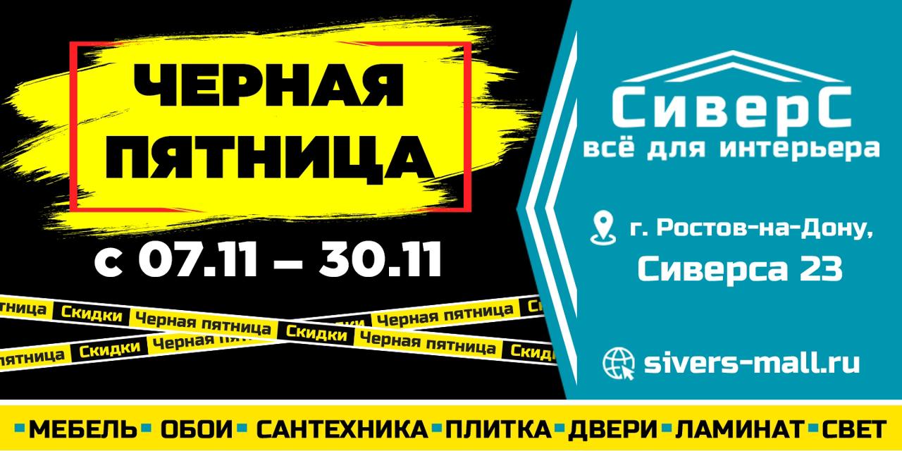 Также в ноябре многие магазины ТЦ «Сиверс» проводят масштабную распродажу во время международной акции «Черная пятница». Покупателям предложат товары для качественного ремонта и стильного интерьера по самым выгодным ценам в течении ноября. На акционные товары скидки могут доходить до 50% и даже до 80%. Их количество ограничено, поэтому запланировать визит в ТЦ «Сиверс» стоит заранее, не откладывая поход до конца ноября.