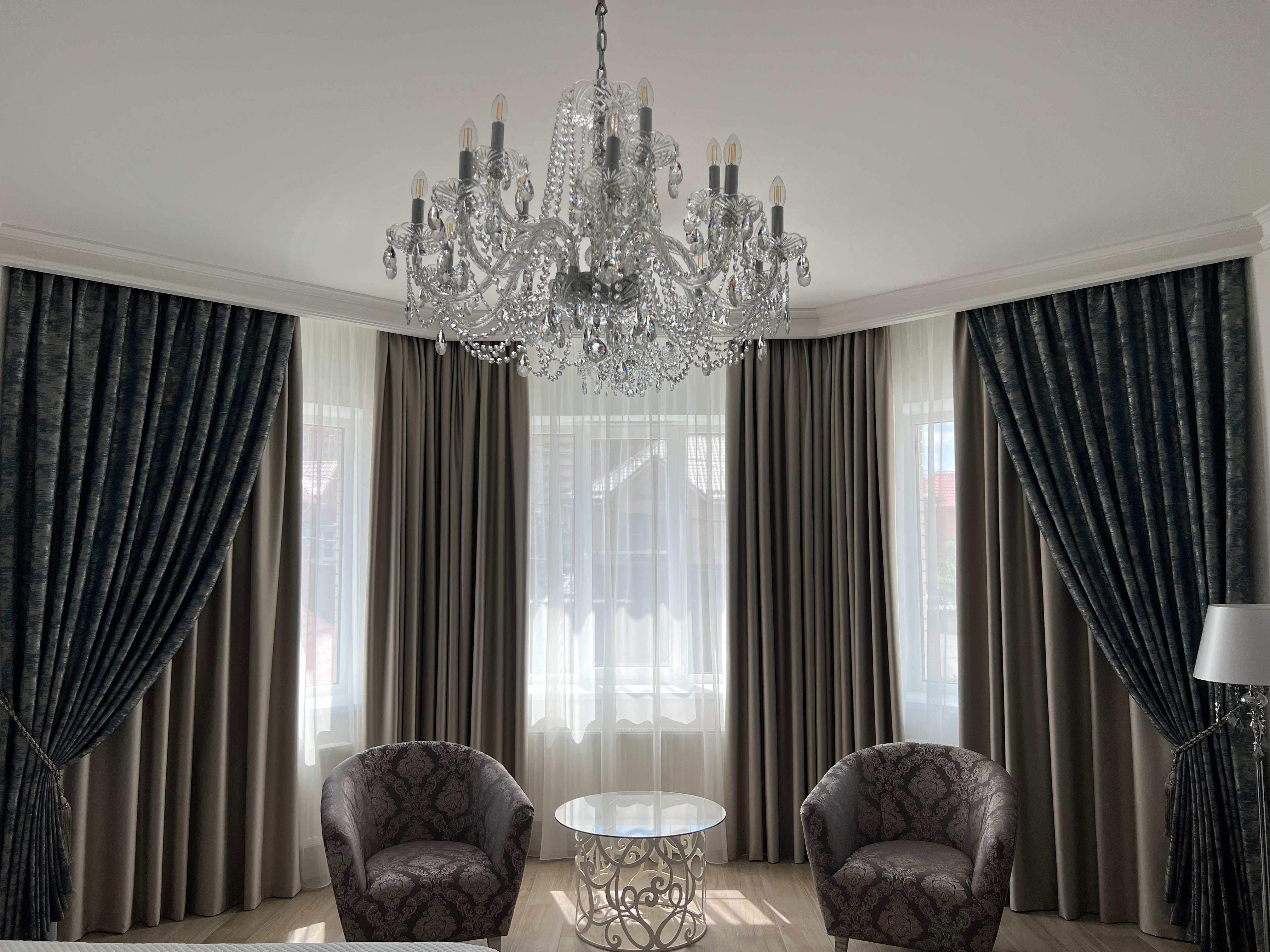 - Финальная сборка, монтаж и навеска композиции: шторы, тюли, карнизы, подхваты, кисти.