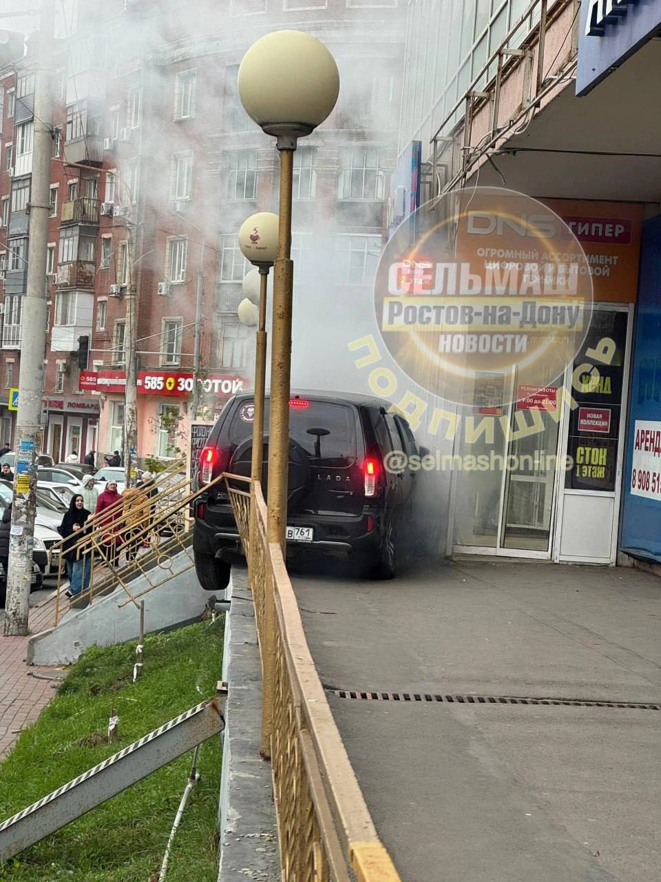 На кадрах видно, что машина въехала на пешеходную зону. К месту происшествия подошли прохожие, которые вызвали спасателей. По предварительным данным, водитель вел себя неадекватно.
