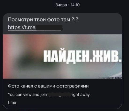 Сообщения с текстом «Это твои фото?» создают ощущение срочности и личной угрозы, побуждая пользователя перейти по ссылке. Перейдя по ней, жертва оказывается на Telegram-канале, где находится вредоносный APK-файл. После его установки приложение получает доступ к информации на устройстве, включая списки контактов. Вредоносное ПО начинает рассылать аналогичные сообщения со ссылкой своим контактам, превращая устройство пользователя в рассыльный канал мошеннической схемы.