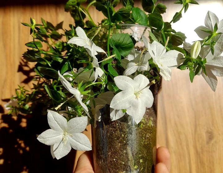Растение выглядит очень нежным. Как правило, продают его, в пик цветения. Одна кампанула может выглядеть как целый букет. При этом такой питомец будет достаточно чувствительным в плане ухода.