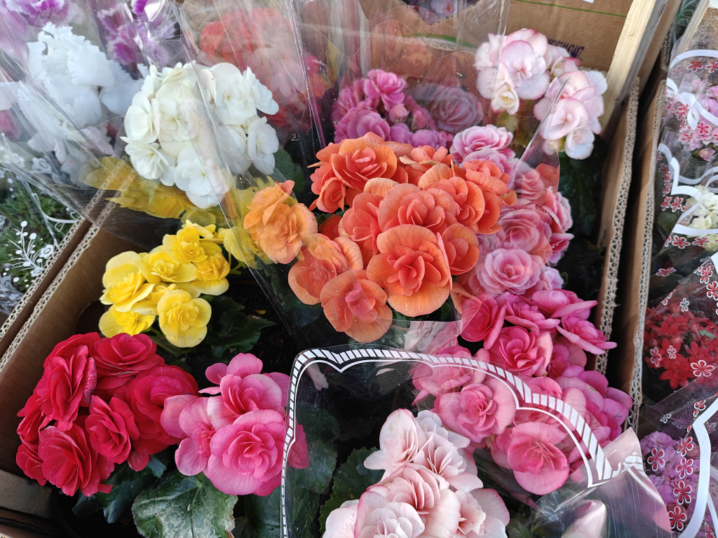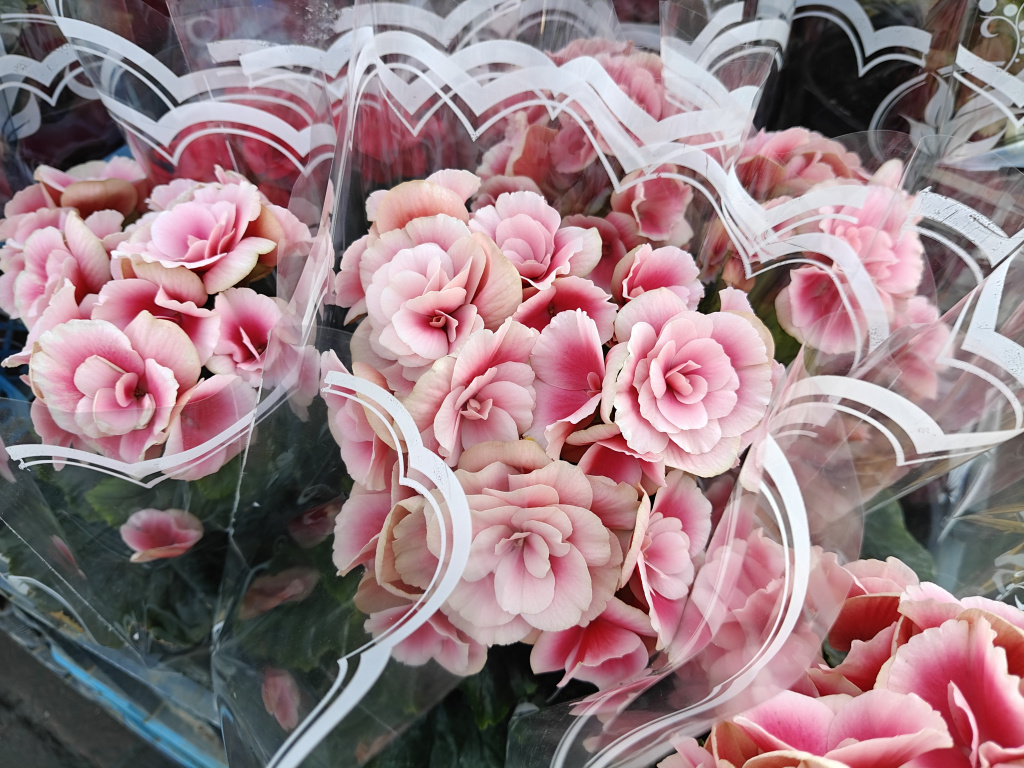 Разноцветные бегонии — частый выбор покупателей. Их существует много видов, но чаще всего перед 8 Марта продают группу «Элатиор», в которую входит много сортов. Это компактные кустики с пёстрыми цветами. Однако растение не относится к самым простым в уходе, несмотря на то, что становится популярным выбором.