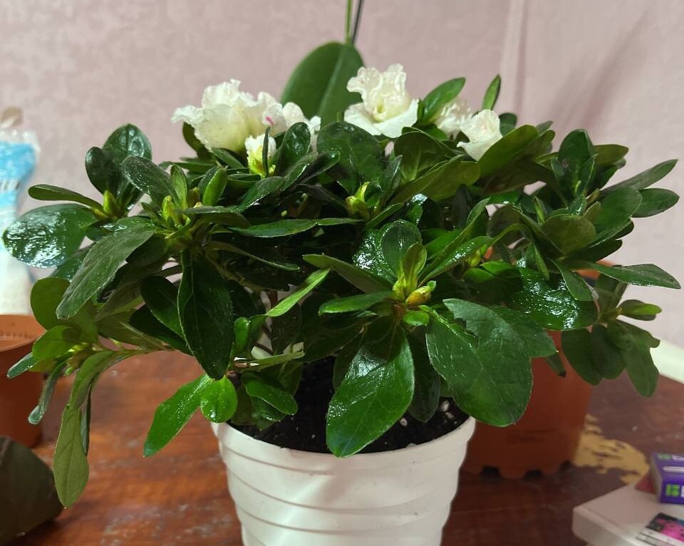 Невероятно нежный, но привередливый цветок. Напоминает миниатюрное цветущее дерево. Для неё губительны как пересыхание грунта, даже кратковременное, так и чрезмерная влажность. Поливать нужно часто, но не перебарщивать с количеством воды. Можно посадить азалию на фитиль, тогда она будет «пить» столько, сколько ей нужно для успешного роста и цветения.