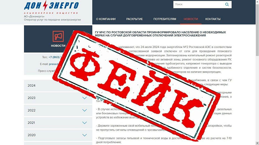 «Уважаемые жители Ростовской области! Данная информация не публиковалась обществом и является недостоверной. В настоящее время система электроснабжения АО «Донэнерго» работает в штатном режиме.