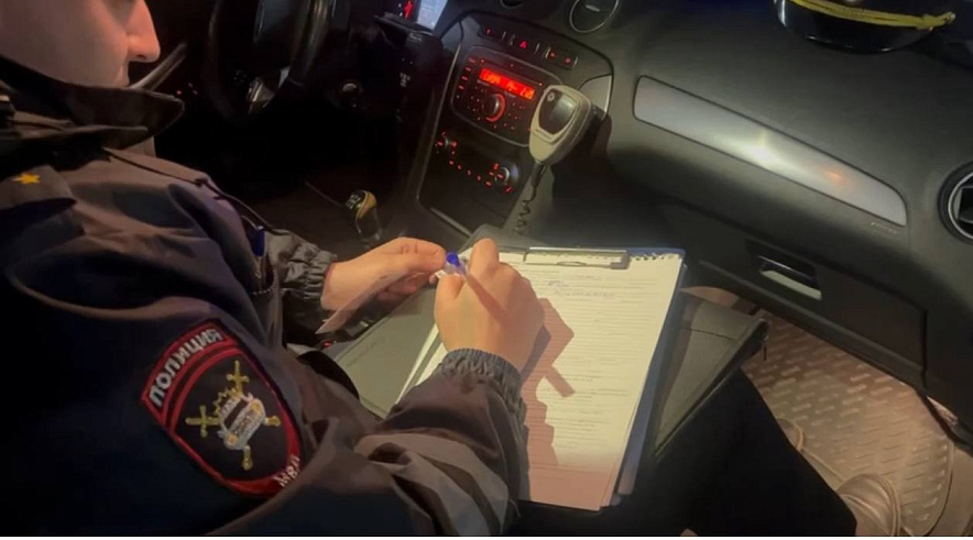 Фото: инспектор оформляет протокол, кадр ГАИ РО