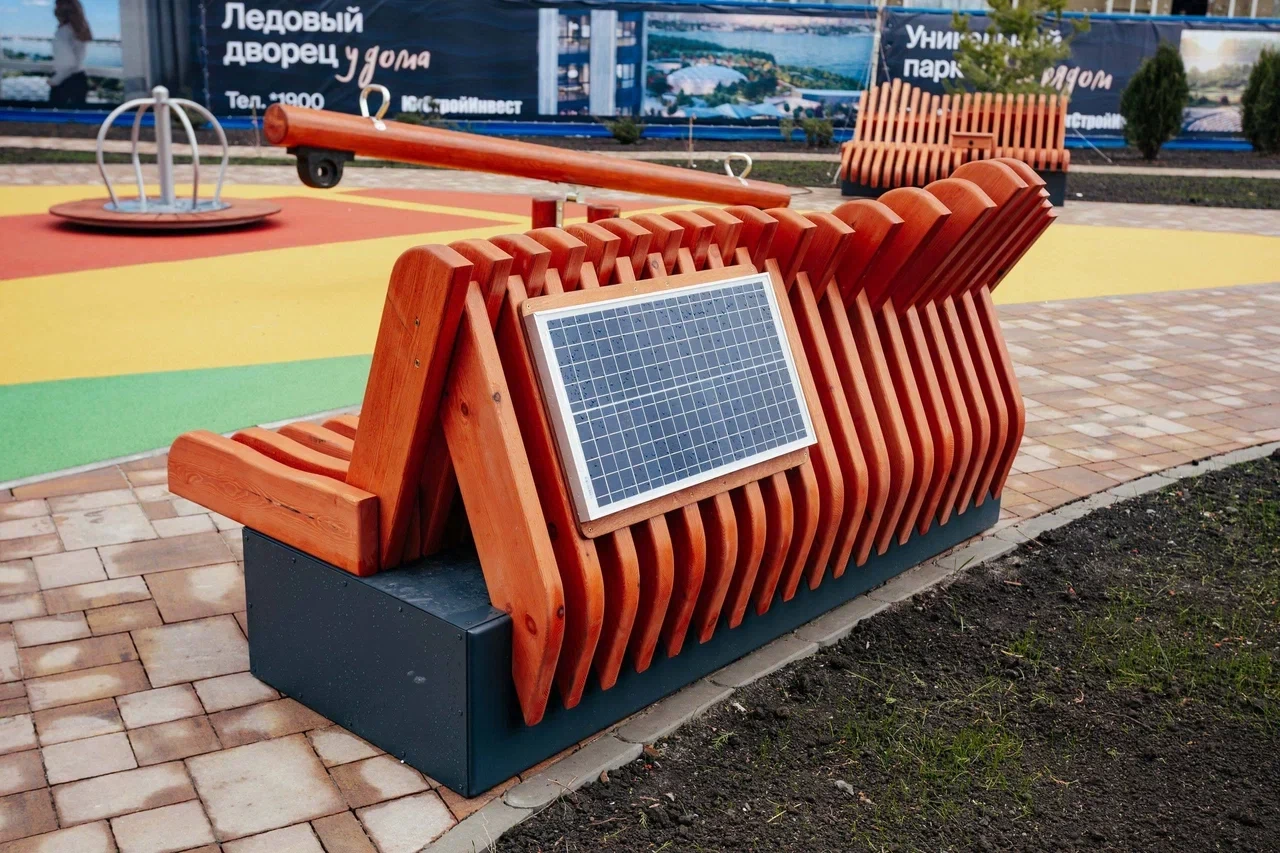 Одной из уникальных особенностей дома стали «умные» лавочки на солнечных батареях, которые позволят жителям не только отдыхать во время прогулок, но и заряжать свои мобильные устройства.