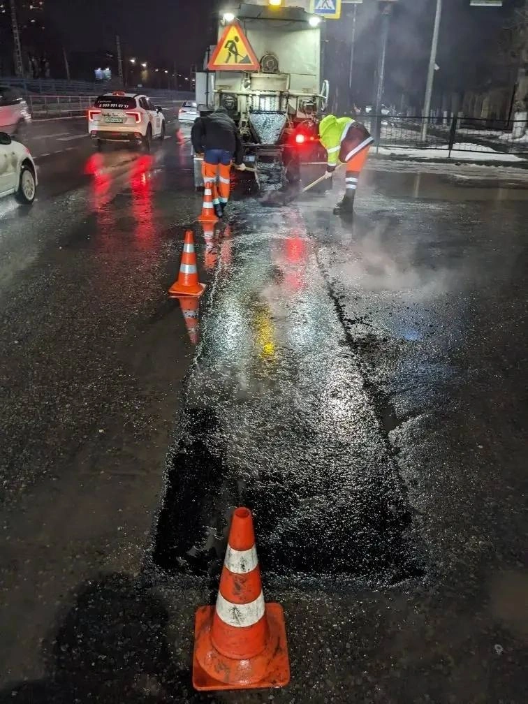 Специалисты МКУ «ДИСОТИ» ведут круглосуточный мониторинг состояния дорожного полотна, оперативно выявляя новые повреждения.