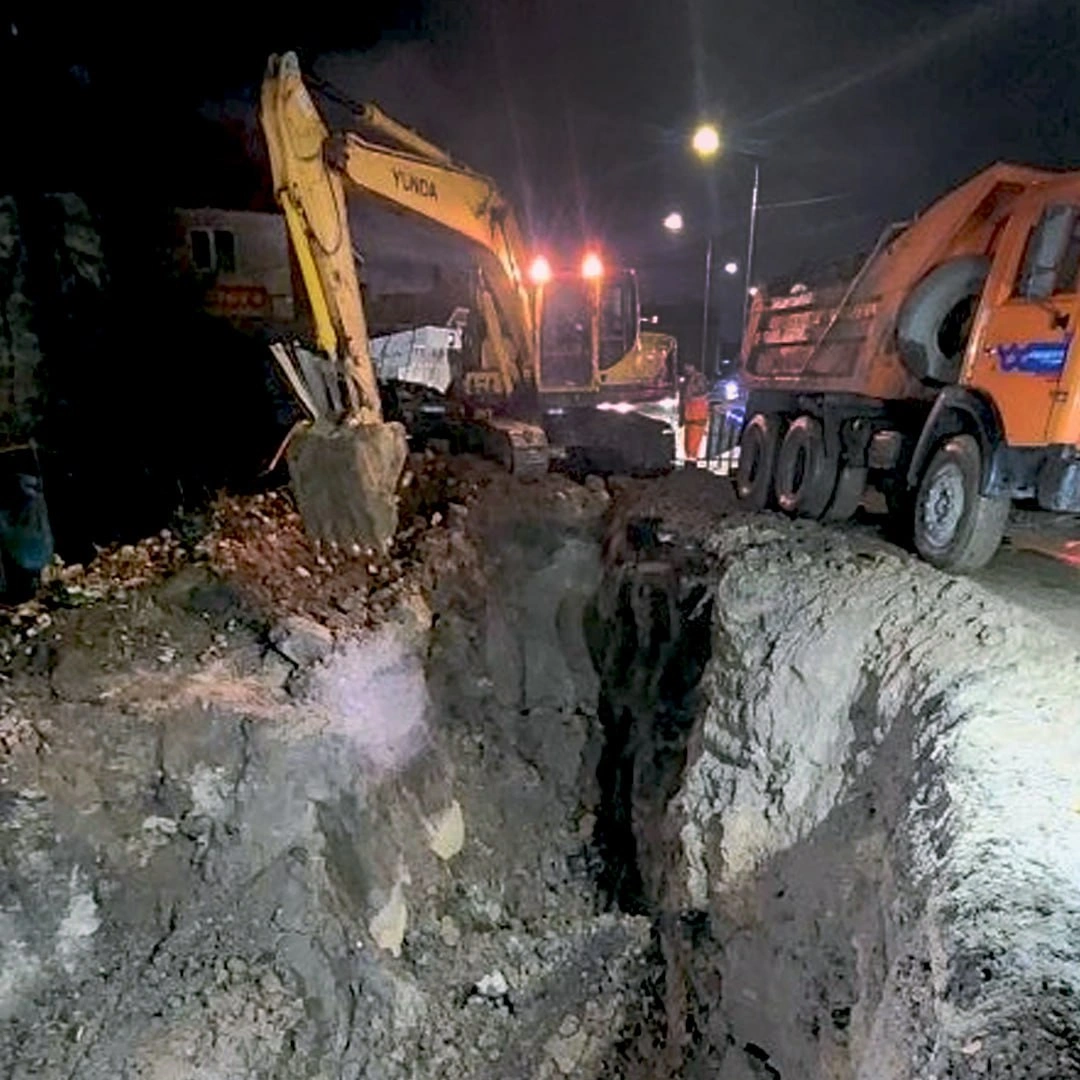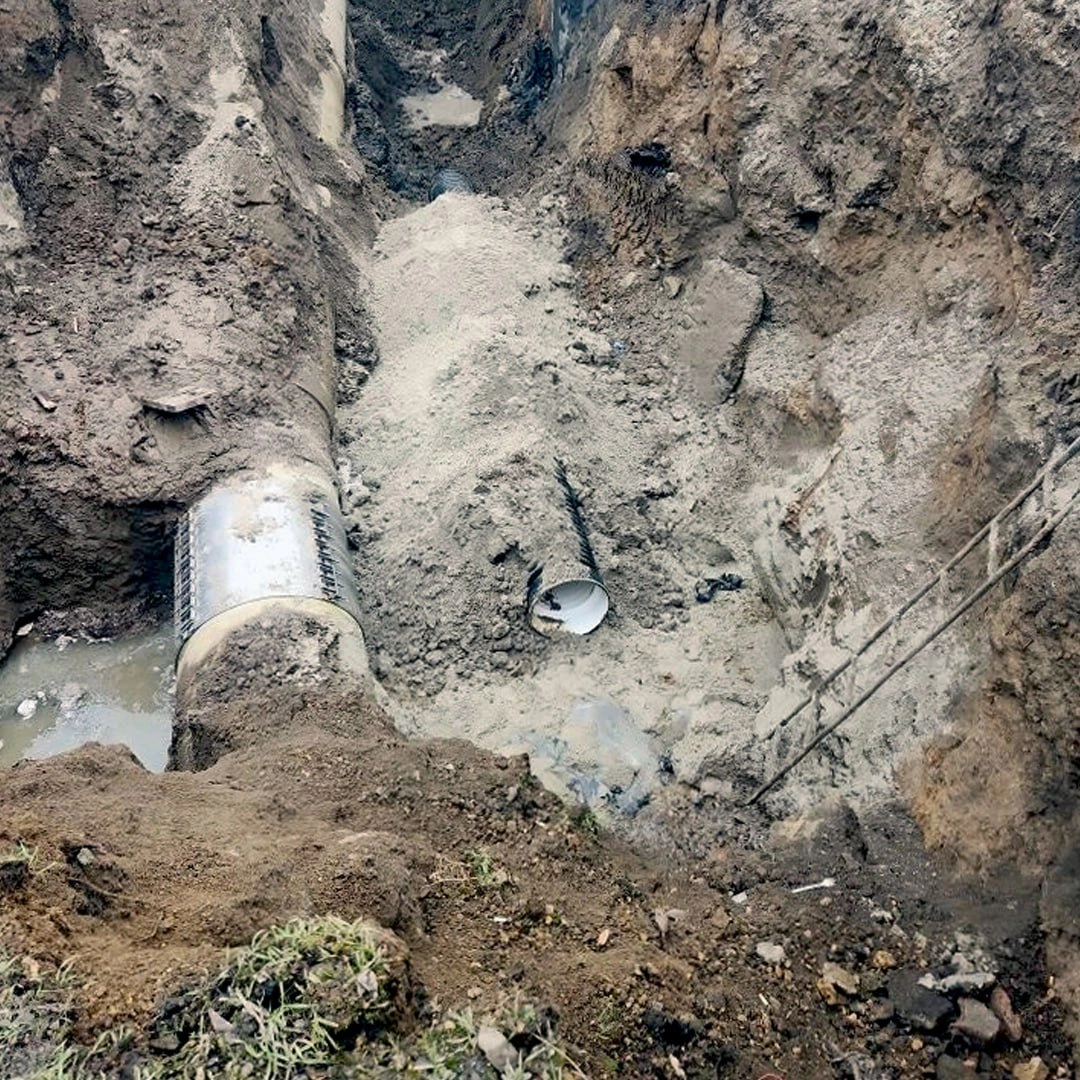 На месте происшествия в круглосуточном режиме работают две бригады и 10 единиц спецтехники. Для обеспечения бесперебойного водоотведения от близлежащих домов организована временная перекачка сточных вод с помощью дизельной установки. На данный момент специалисты уже заменили 24 метра трубопровода, предстоит переложить еще около 12 метров.