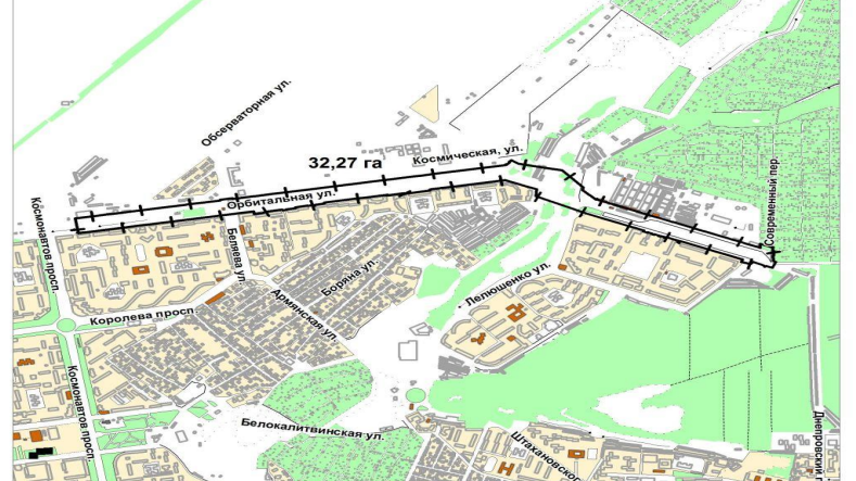 Компании разрешили распланировать 32 га земли. Линия скоростного трамвая будет идти по Орбитальной почти от Днепровского до Космонавтов.
