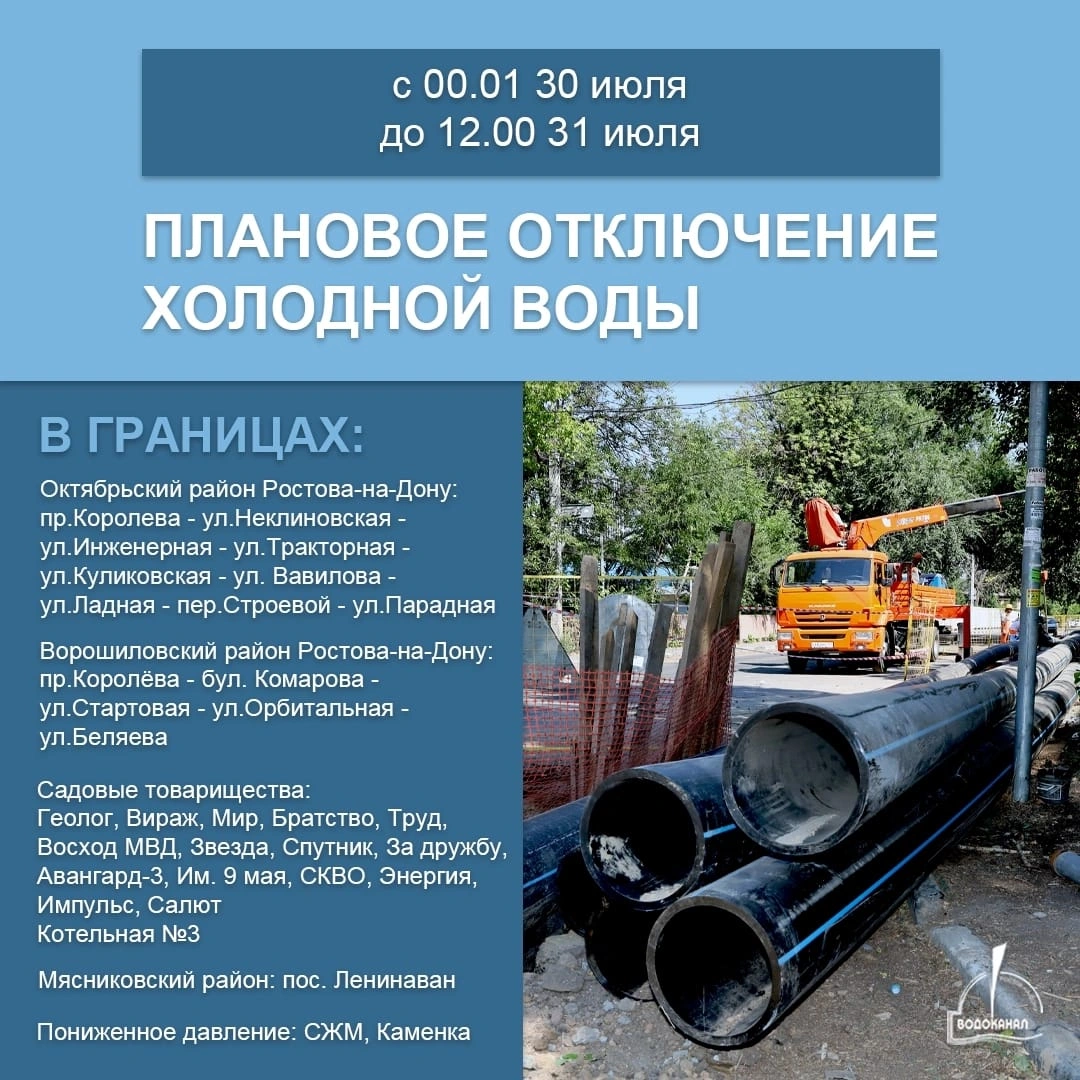 — К сожалению, эту задачу невозможно выполнить без временного отключения холодной воды в указанных границах. Благодарим за понимание и приносим извинения за доставленные неудобства!, — обратились к жителям города.