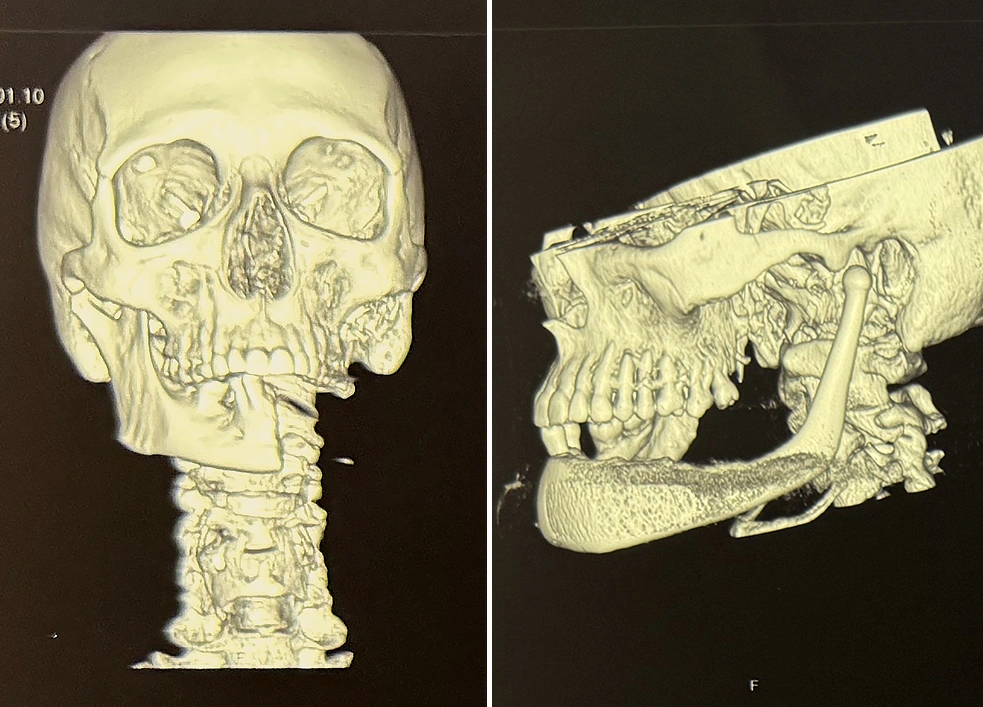 Первым этапом лечения 49-летней пациентки из Донецкой Народной Республики была проведена обширная резекция левой половины нижней челюсти для удаления амелобластомы — опухоли, формировавшейся из клеток, отвечающих за образование зубной эмали. Спустя несколько месяцев, после того как специалисты из Краснодара изготовили индивидуальный титановый имплант по компьютерным томограммам, врачи РОКБ провели вторую операцию.
