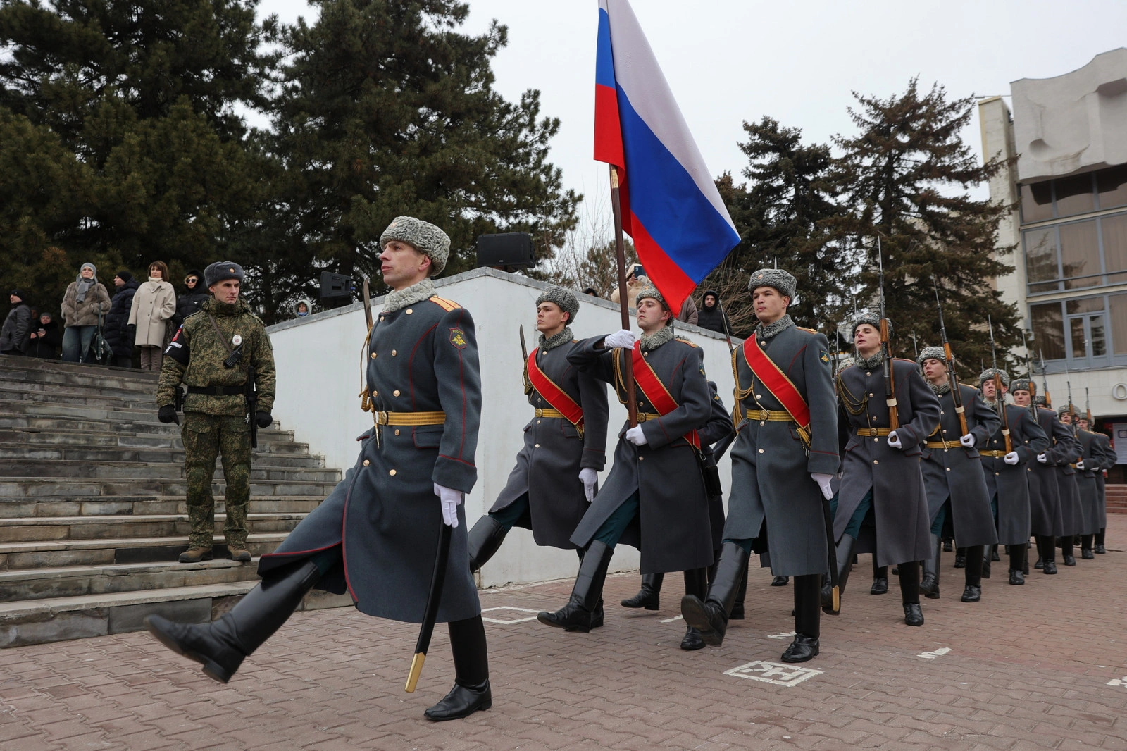Мероприятие завершилось проходом роты почетного караула под аккомпанемент военного духового оркестра.